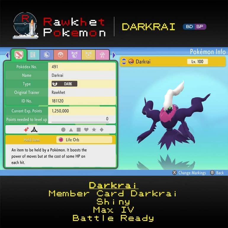 Missed the Member Card event? Get a Darkrai for your Pokemon Brilliant Diamond & Shining Pearl game! Our Darkrai are all Perfect 6IV and Battle Ready.