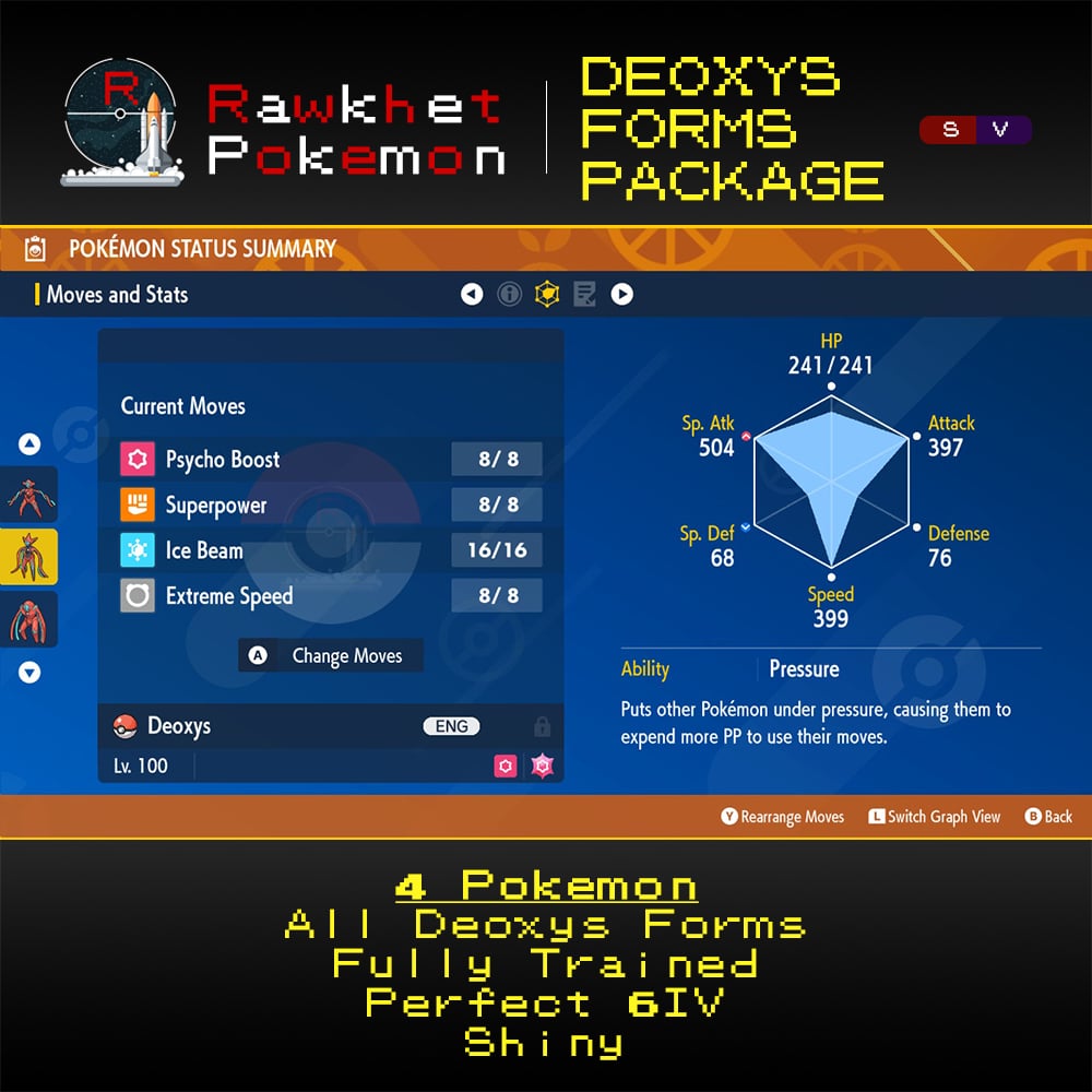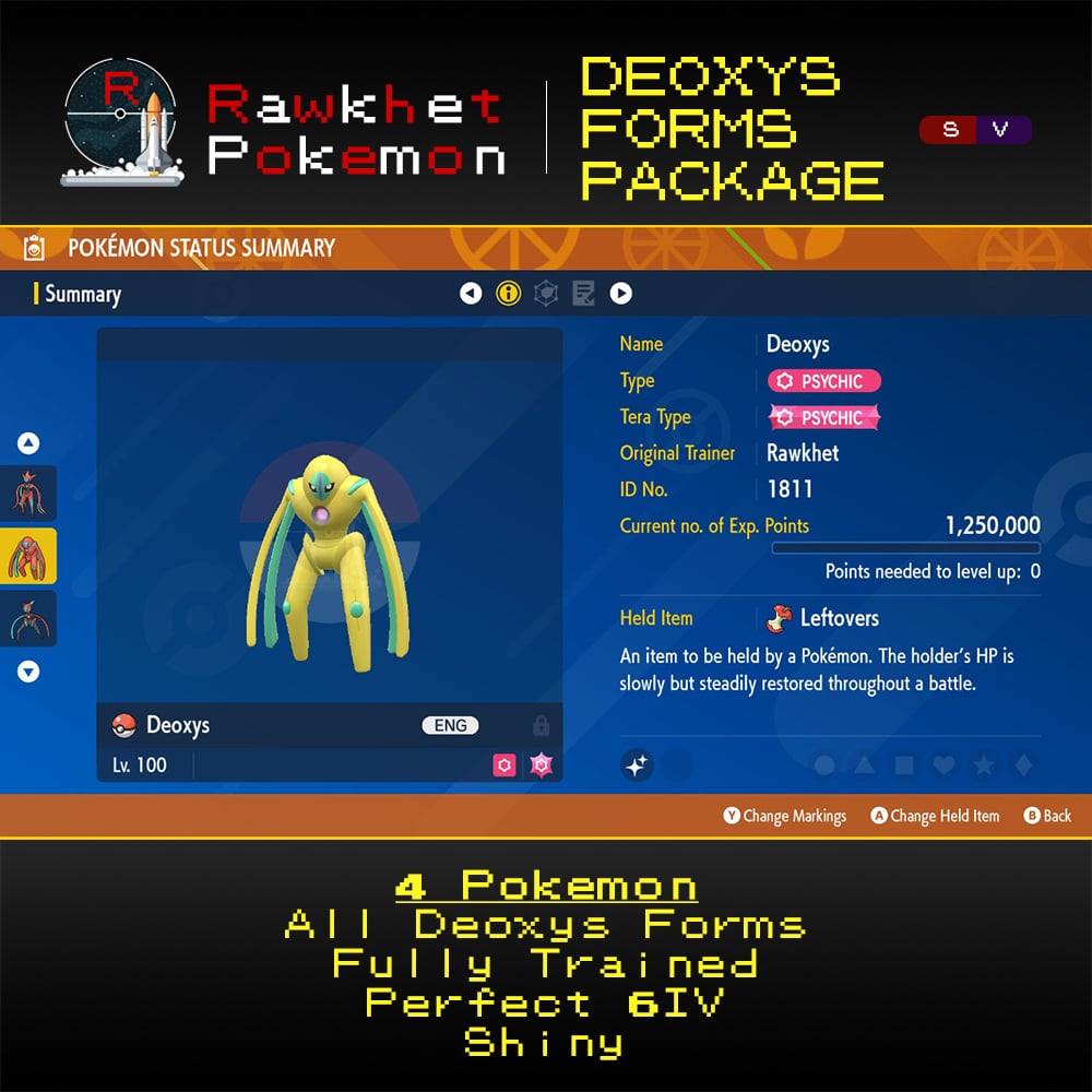4 reviews for Deoxys Forms Package (4x, 6IV, Shiny) – Pokemon Scarlet and Violet