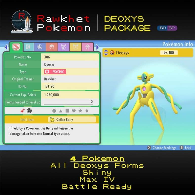 Deoxys Package (4x, 6IV, Battle Ready, Shiny) – Pokemon Brilliant Diamond & Shining Pearl