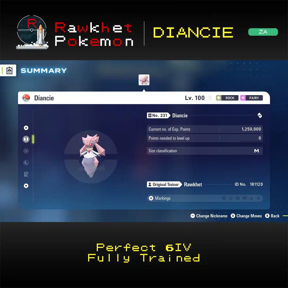 Need another Diancie for your game? Here’s one that’s fully trained and battle ready, for you to take on any challenge in the Z-A Royale!