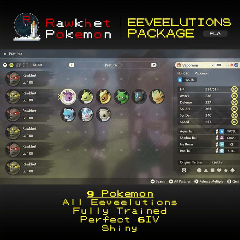 Eeveelutions Package (9x, 6IV, Shiny, Alpha) – Pokemon Legends Arceus