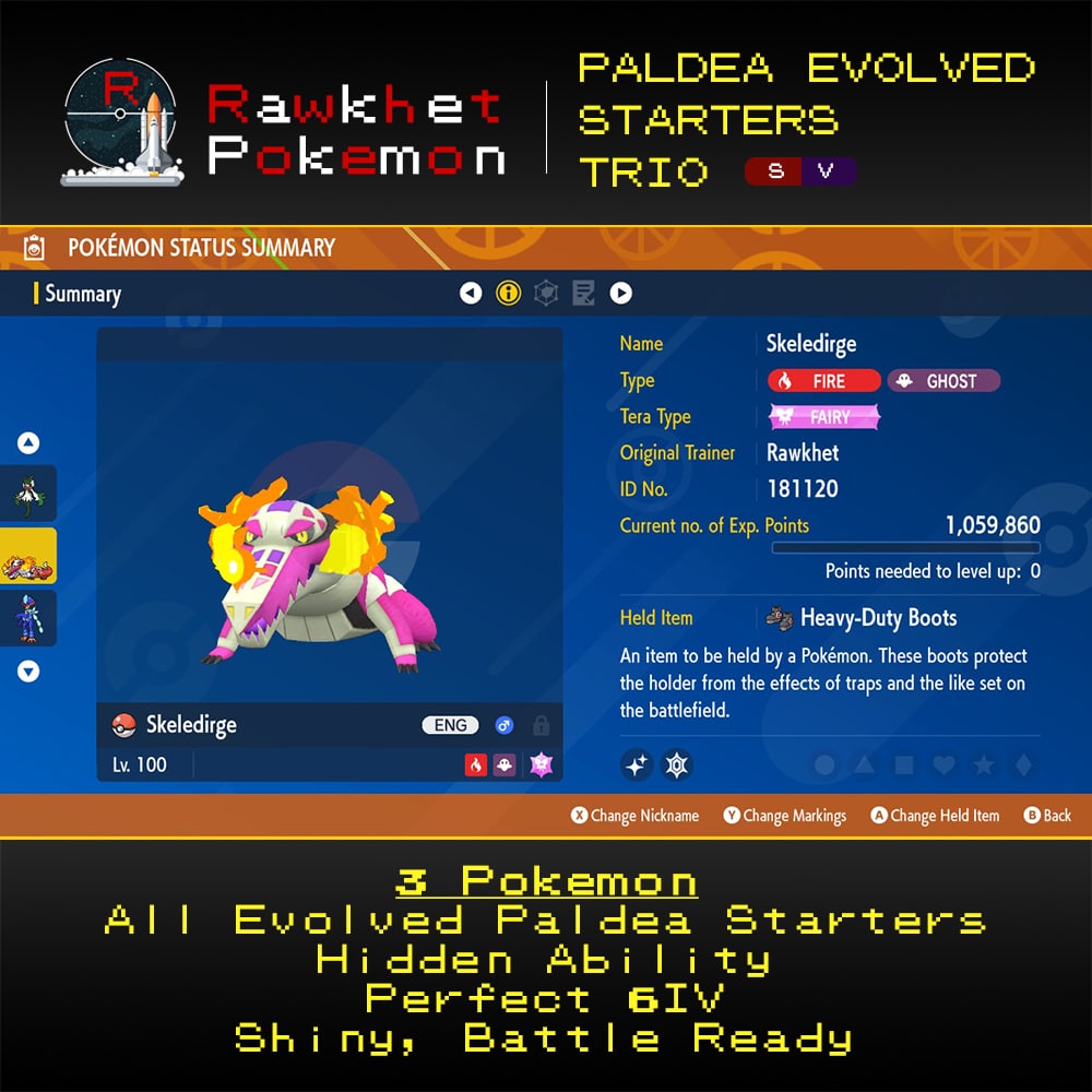 Evolved Paldea Starters Trio (3x, 6IV, Shiny, Hidden Abilities) – Pokemon Scarlet and Violet