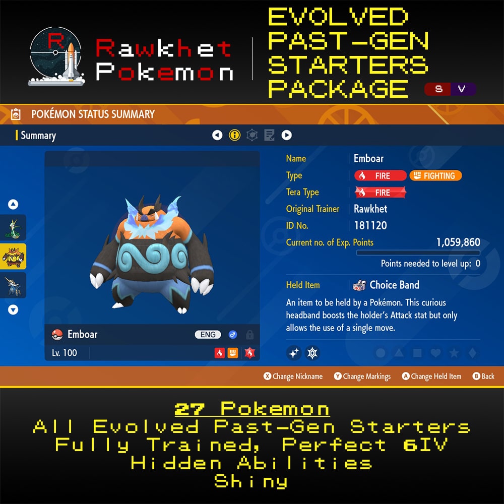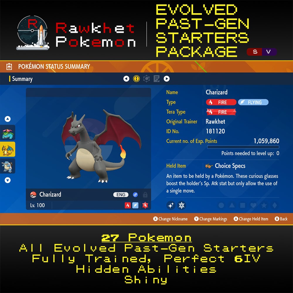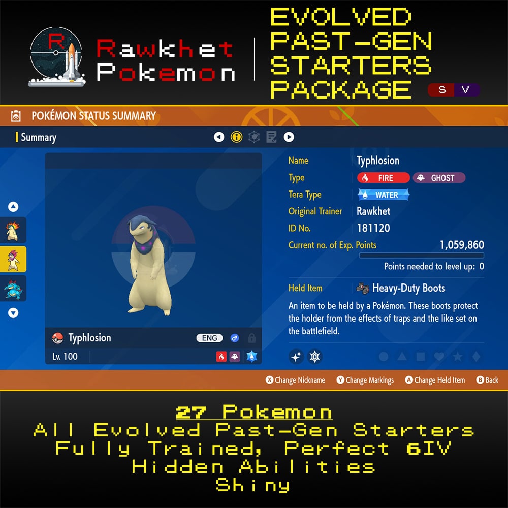 Evolved Past-Gen Starters Package (27x, 6IV, Shiny, Hidden Abilities) – Pokemon Scarlet and Violet