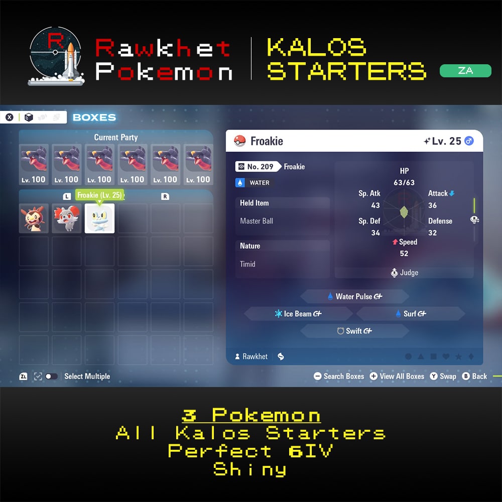 Kalos Starters Package (3x, 6IV, Shiny, Alpha) – Pokemon Legends Z-A
