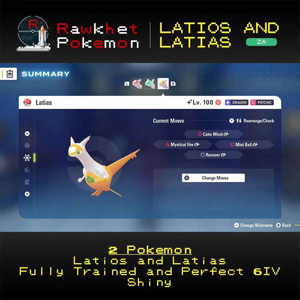 Need a Latias and Latios for your game? Here’s a pair that’s fully trained and battle ready, for you to take on any challenge in the Z-A Royale! Shiny options available!