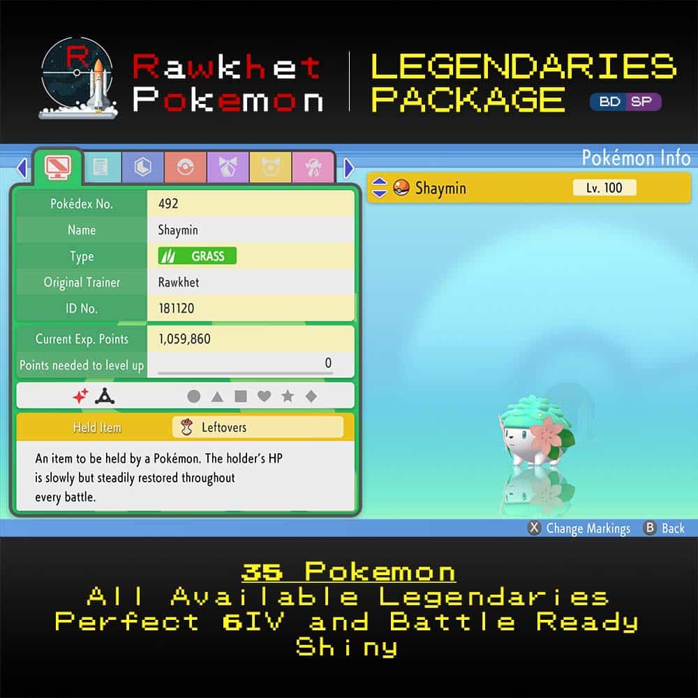 Get all 35 currently available Legendary Pokemon for Pokemon Brilliant Diamond & Shining Pearl! These Pokemon are all Perfect 6IV and Battle Ready.