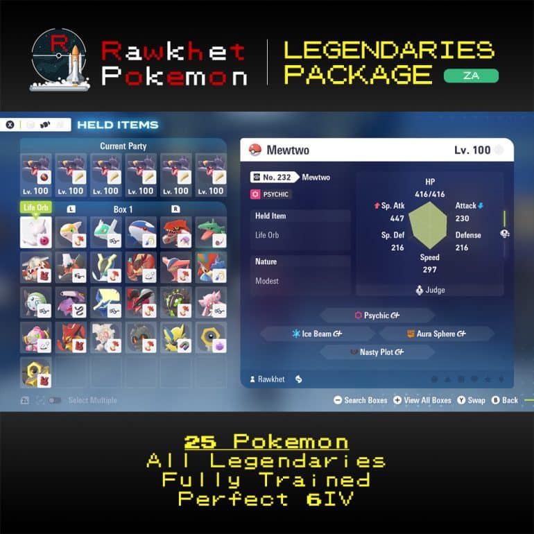 Get the 25 Legendaries of Pokemon Legends: Z-A! These Pokemon are fully trained at Level 100 and ready to flatten your opponents. Shiny options available!