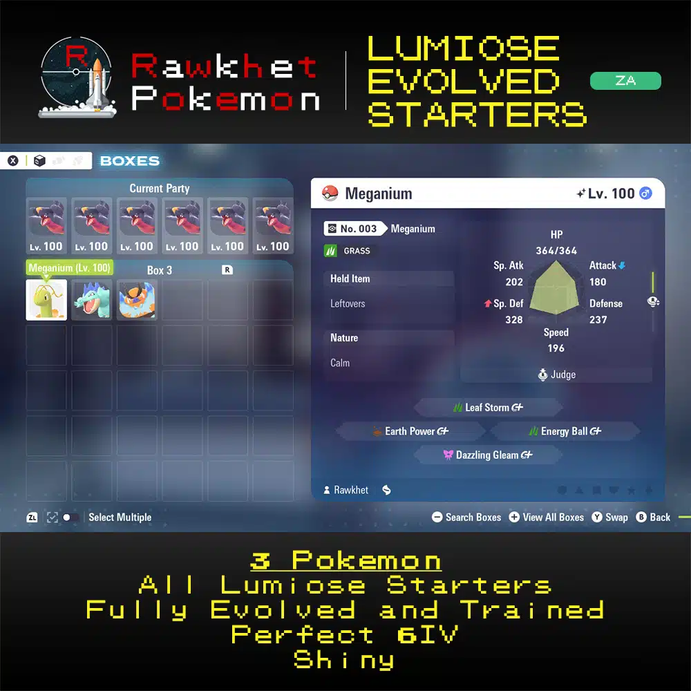 Lumiose Evolved Starters Package (3x, 6IV, Shiny) – Pokemon Legends Z-A