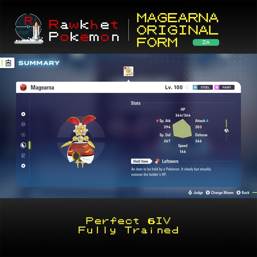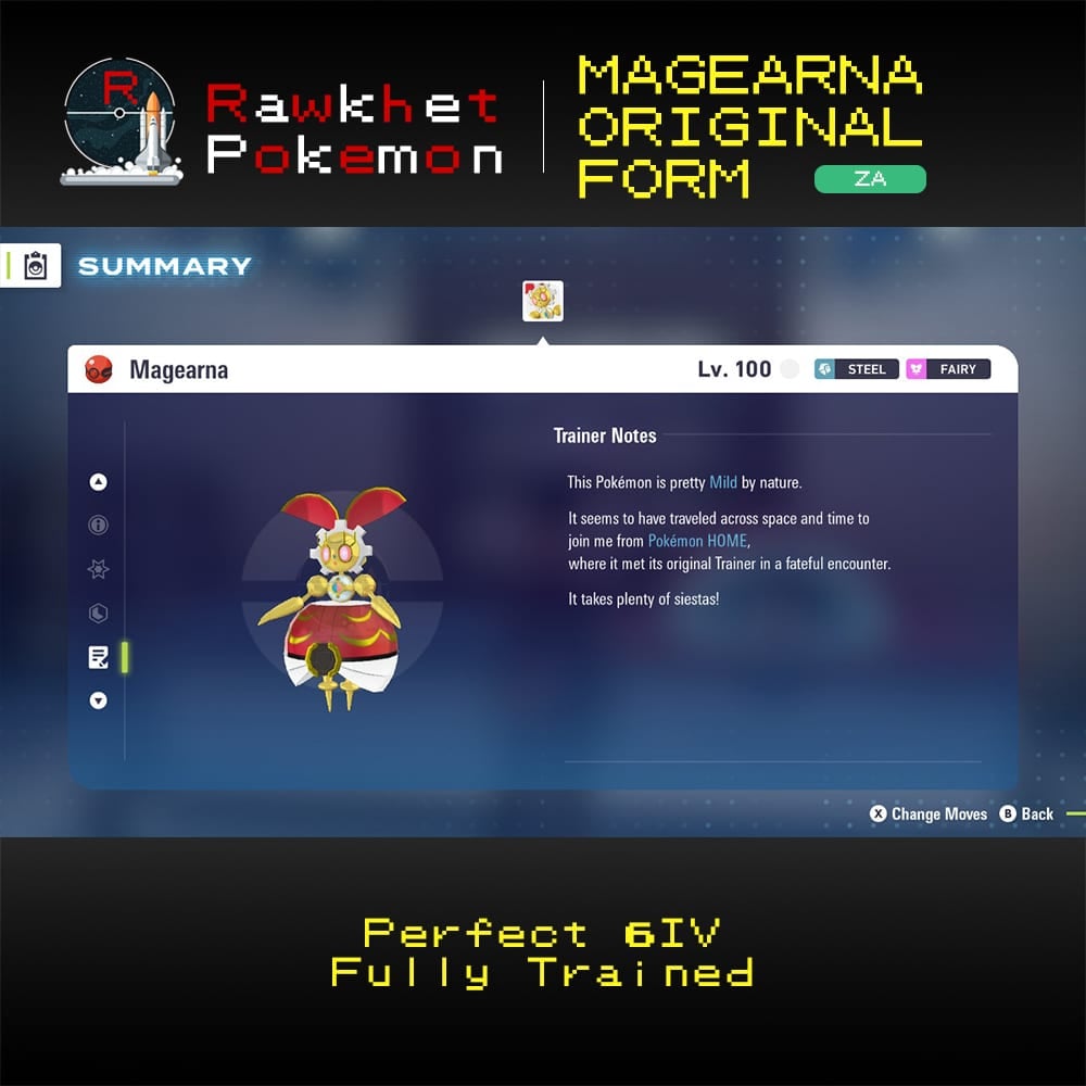 Special delivery from Pokemon Home! Get a Magearna-Original in your Legends: Z-A game to unlock a colorful Mega Evolution form for Magearna! Fully trained with a suggested moveset and build.