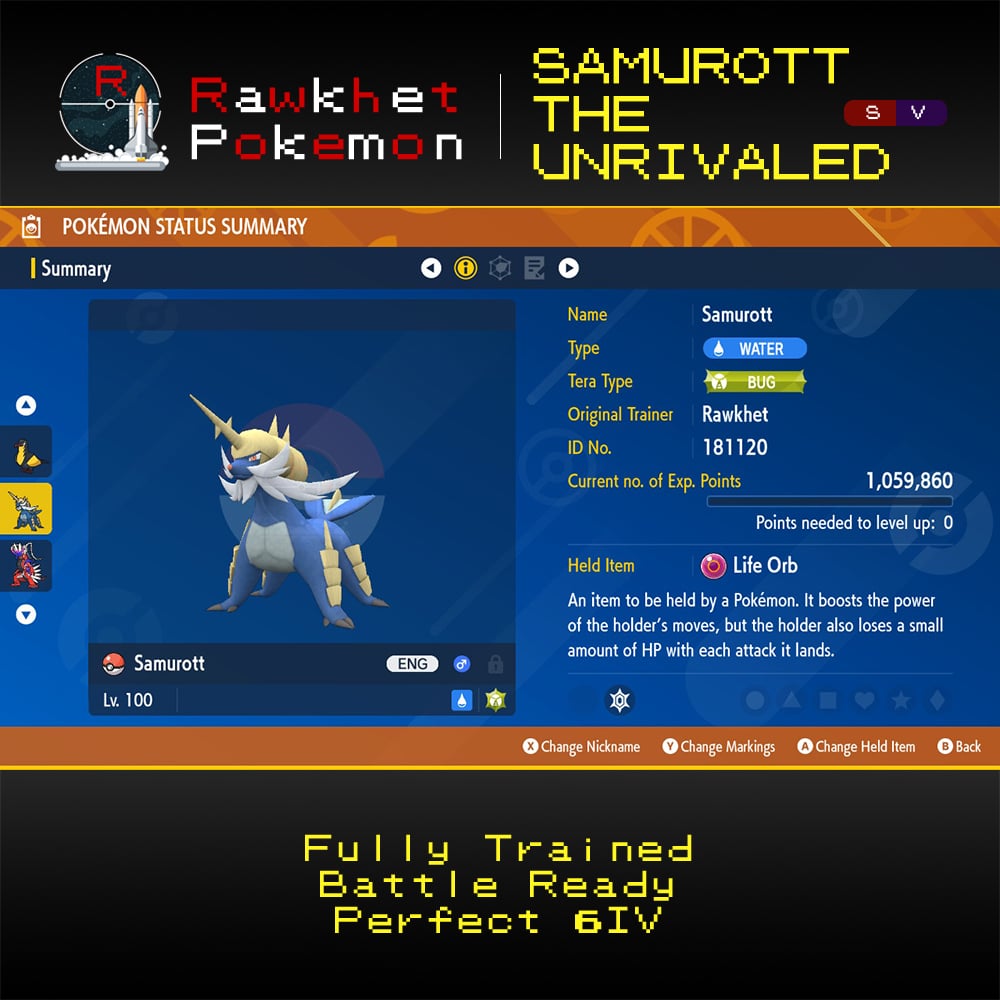 2 reviews for Samurott the Unrivaled (6IV, Battle Ready) – Pokemon Scarlet and Violet