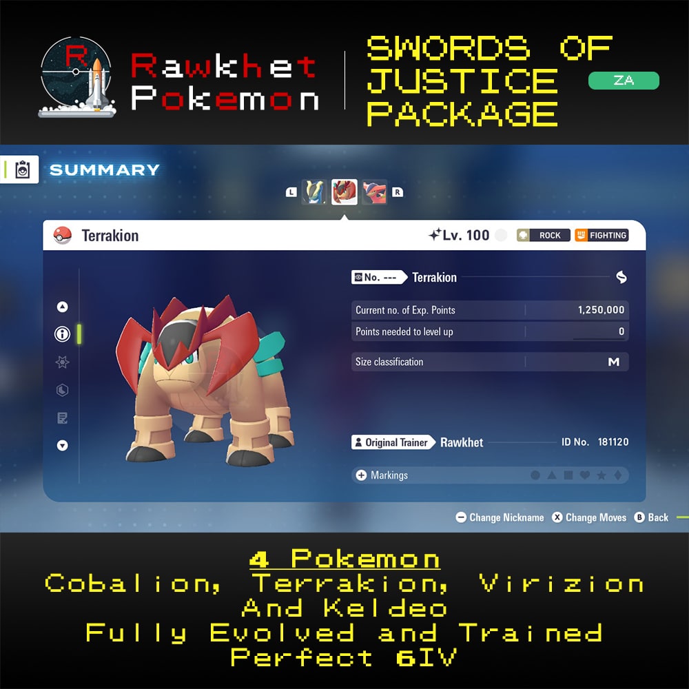 Get the full Swords of Justice set for your Pokemon Legends Z-A game! Each of them has been fully trained with recommended sets. Shiny options available.
